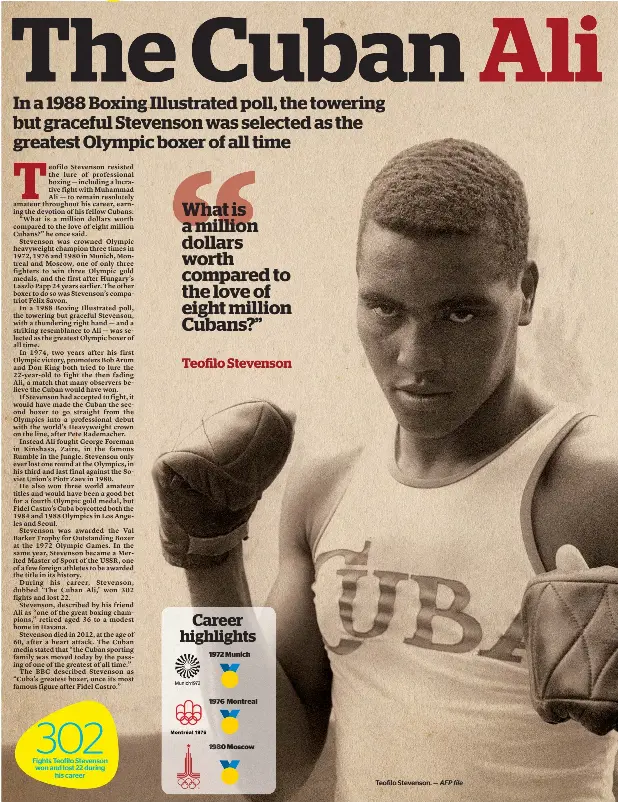In amateur boxing, cuban teófilo stevenson had just won the second of his three olympic golds at montreal's 1976 games.